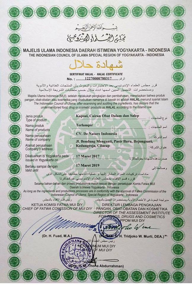 Produk obat sipilis de nature indonesia memiliki sertifikat HALLAL MUI, serta sudah melalui uji laboratorium sebelum mendapatkan ijin edar dari BPOM. Sehingga obat sipilis ini sangat aman digunakan untuk pengobatan dan merupakan alternatif pengobatan sipilis secara herbal paling tepat.